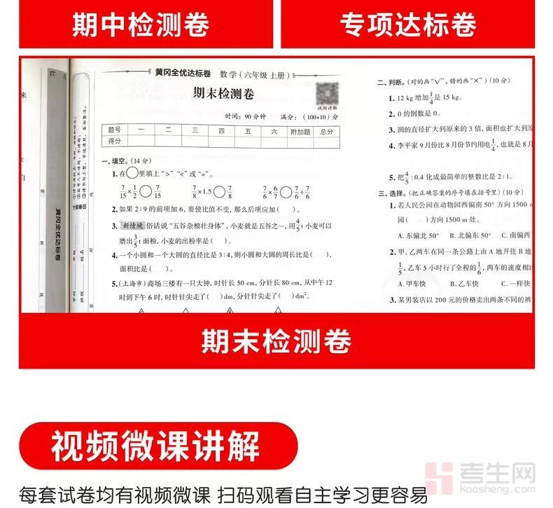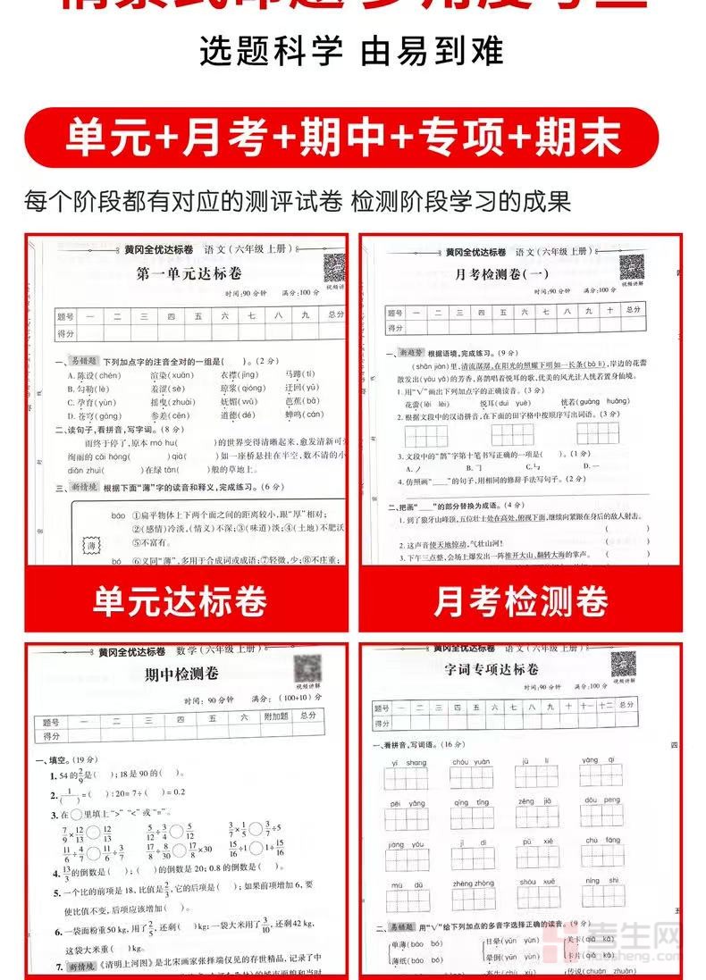 黄冈全优达标卷一年级二年级三年级四五六上册下册试卷测试卷全套语文数学英语人教版小学同步练习册