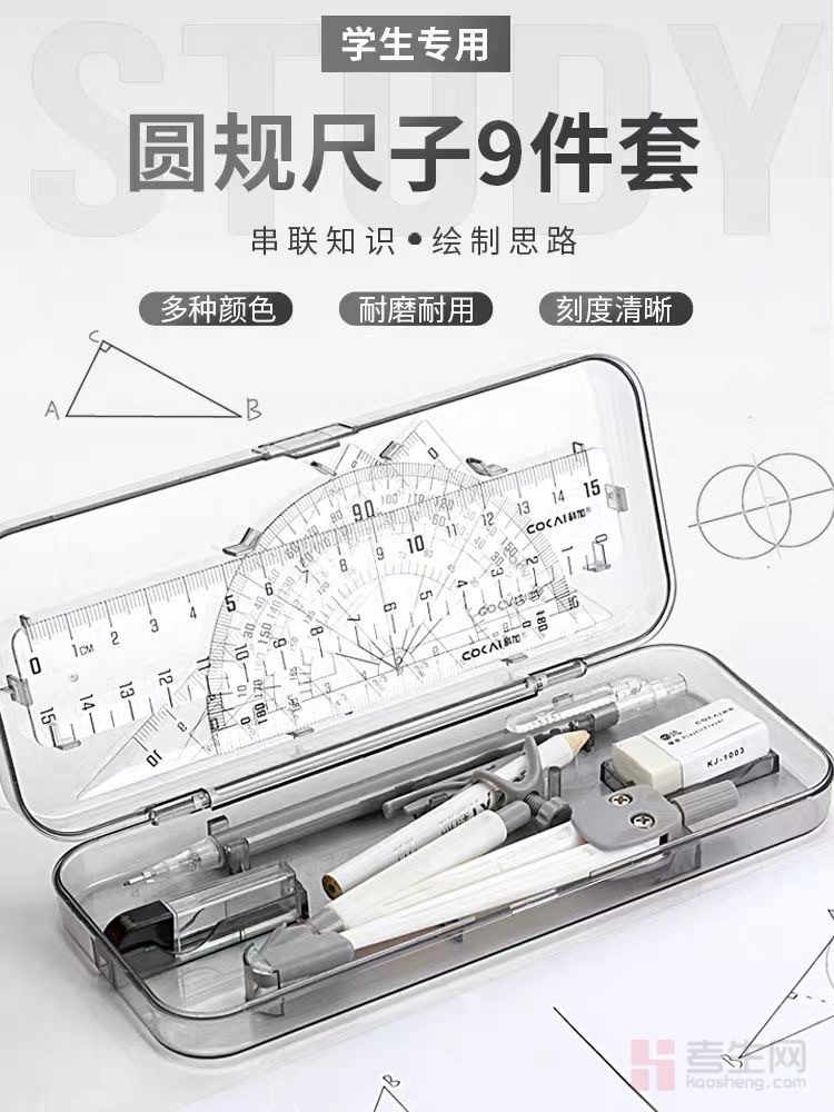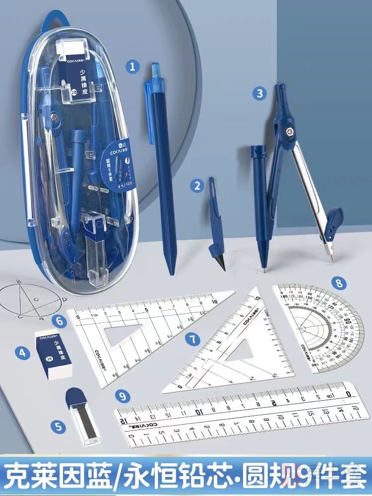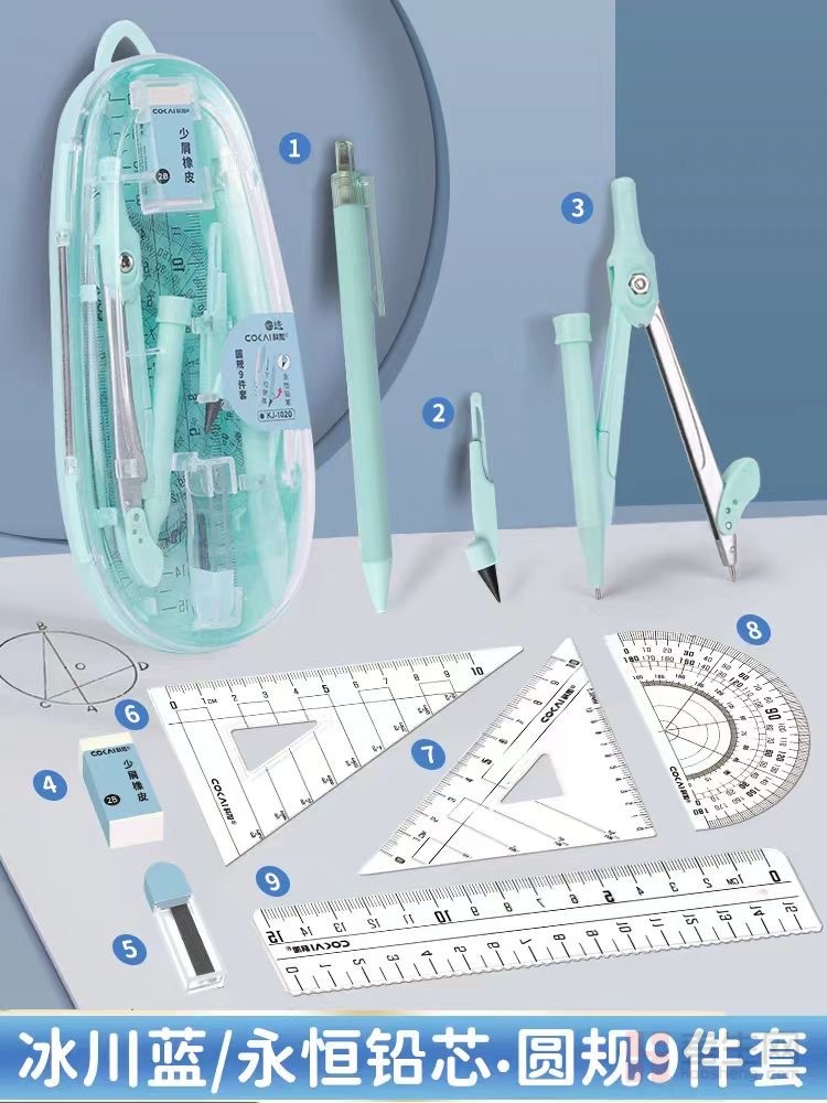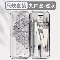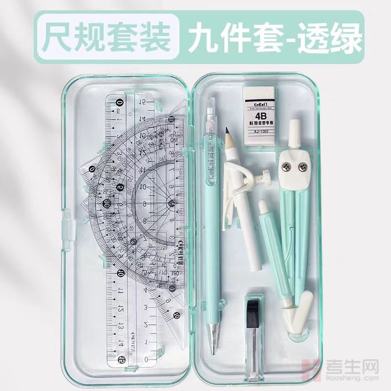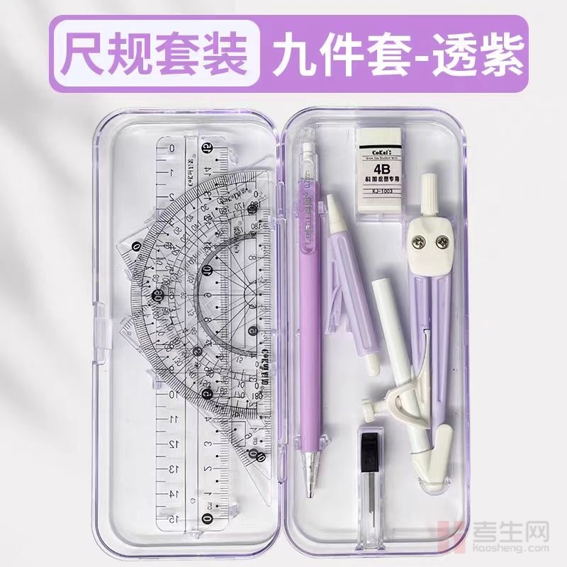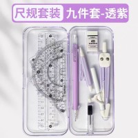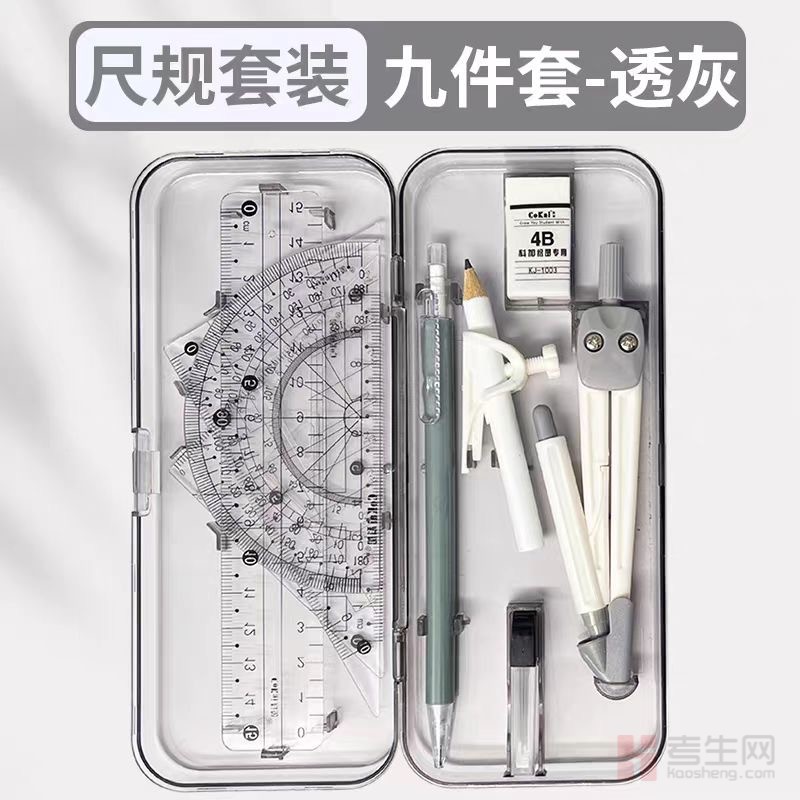 尺子套装九件套,小学生初中生学习用品,考试专用圆规,直尺三教版量角器