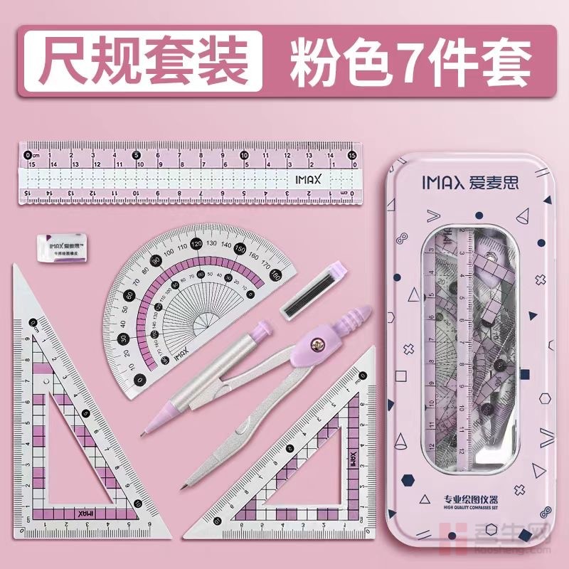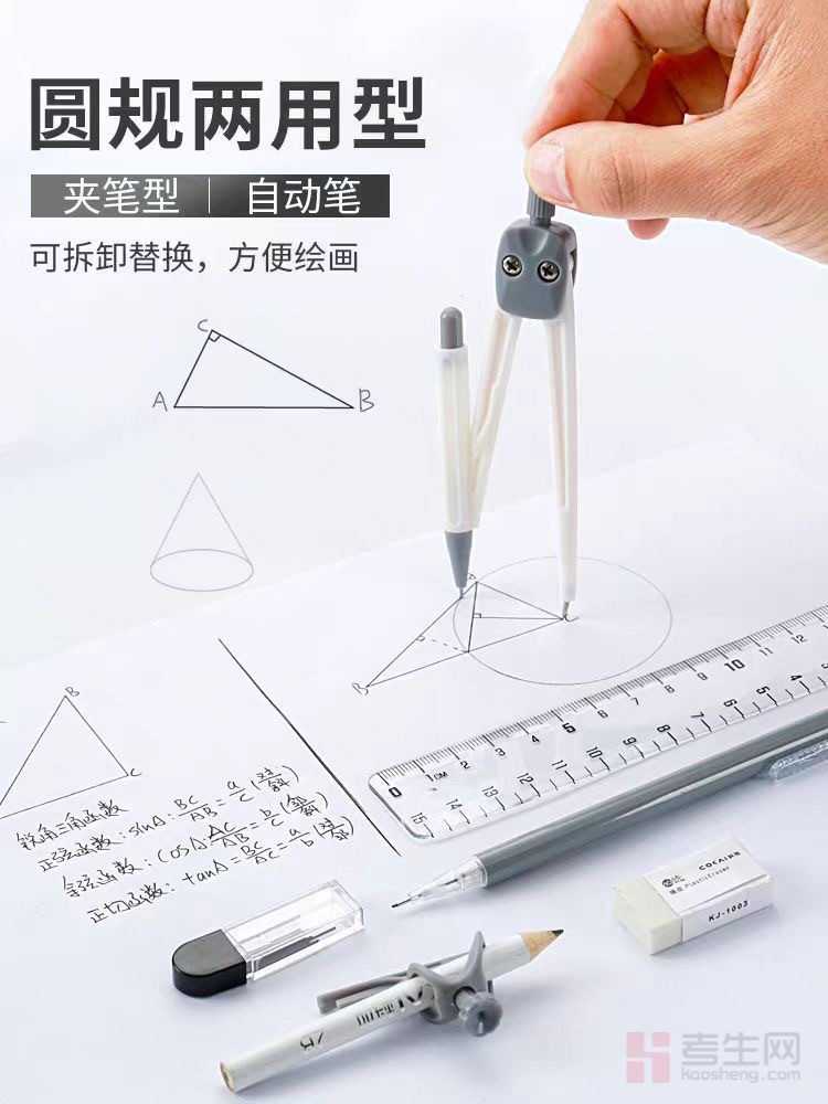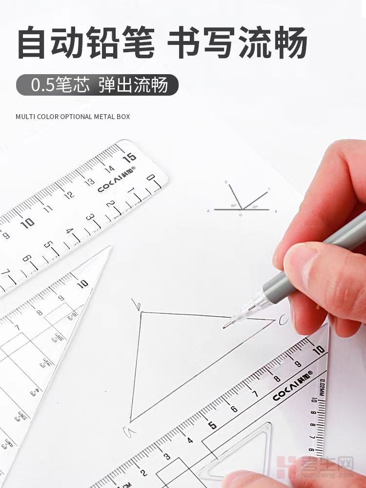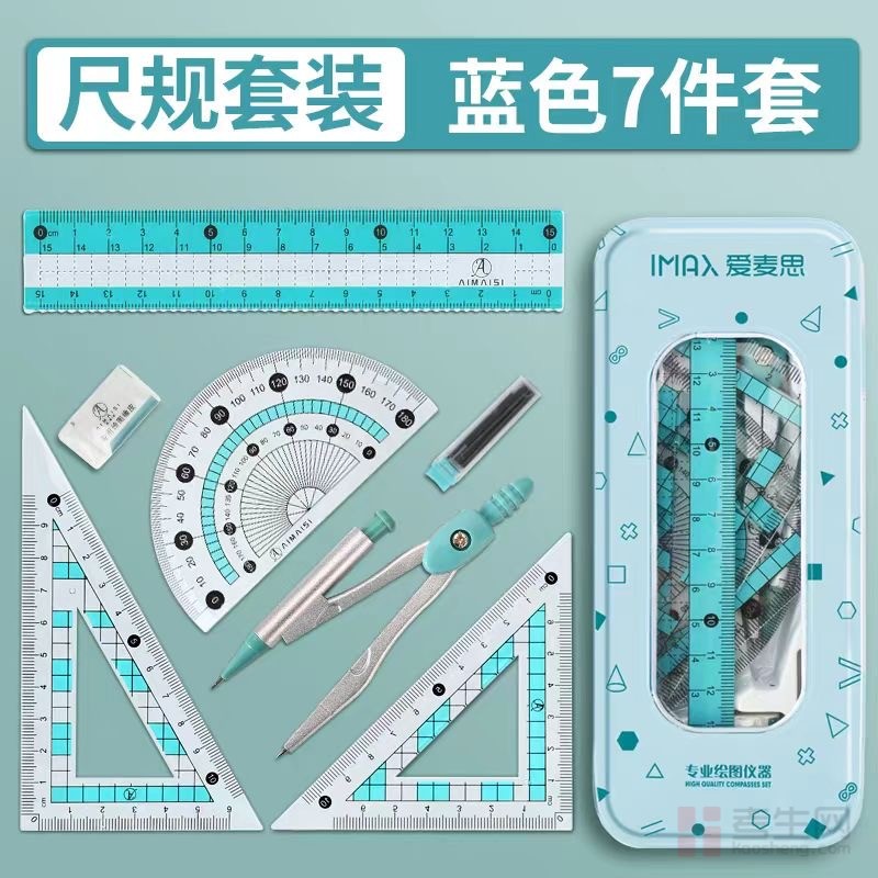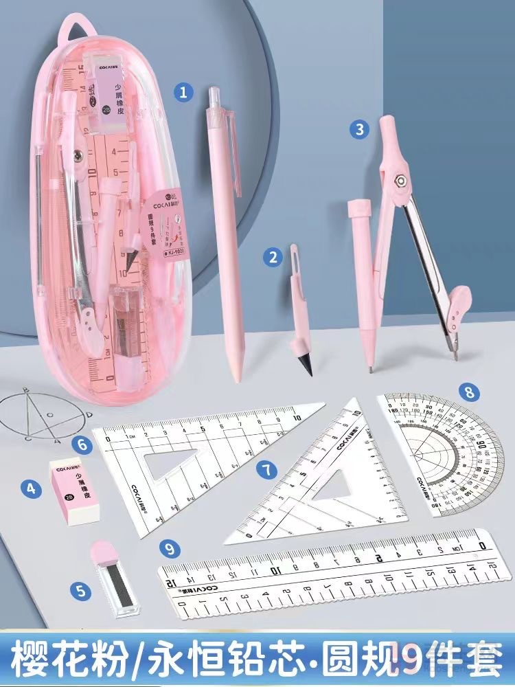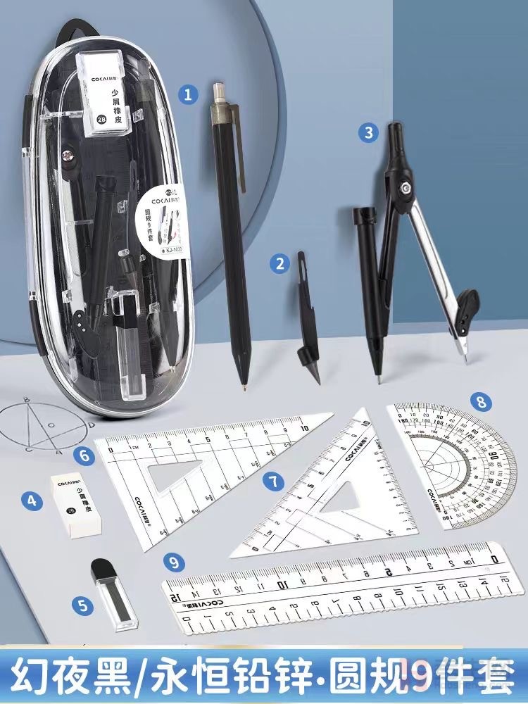 尺子套装九件套,小学生初中生学习用品,考试专用圆规,直尺三教版量角器